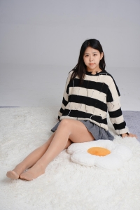 一、素材适用行业: 服装、毛衣商家、摄影椅、丝袜厂家、写真摄影教程、手足滋润霜等 二、素材规格 照片 数量:111张 分辨率:3672×4680 视频 清晰度:4k 第一视角:31:09 三、穿着搭配 衣服:条纹毛衣+灰色短裙 鞋子:无 袜子:极透肉色丝袜+裸足